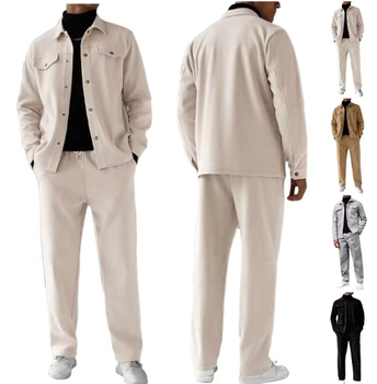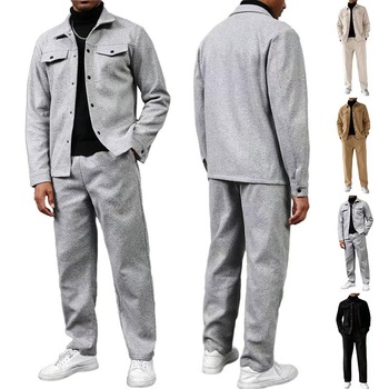Vendita calda transfrontaliera giacca da uomo autunno e inverno Set traspirante a maniche lunghe con risvolto per colletto bianco alla moda e vestibilità ampia
