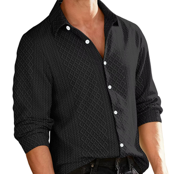 Camicie da uomo in poliestere con chiusura a bottone singolo in tinta unita Anti-pilling da uomo
