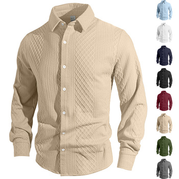 Camicia da uomo autunno Casual con colletto rovesciato tinta unita Plus Size con bottone singolo a manica lunga in saia in tessuto Anti-pilling