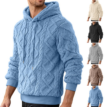 Felpa con cappuccio in pile a doppio lato Jacquard da uomo stile estero stile americano solido looseautunno inverno Casual