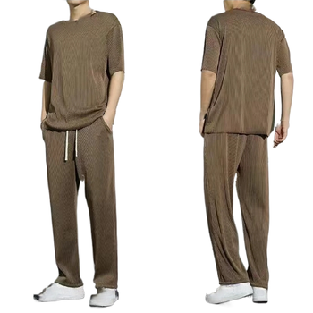 בגדי קיץ גבוהה לגברים ספורט בקיץ ספורט מהיר יבש סרוג חולצה ומכנסיים ארוכים