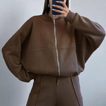 אירופה אמריקאי מזדמנים סט שני חלקים של נשים להגדיר סתיו חורף מודפס קרדיגן ספורט בסגנון רחוב